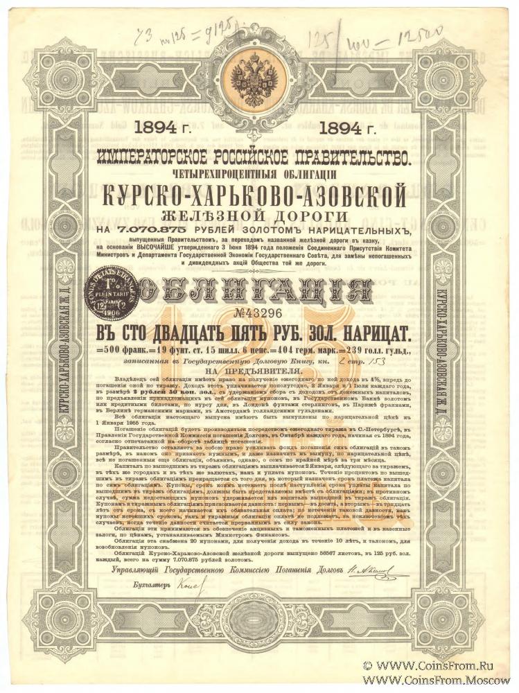 Курско-Харьковско-Азовская железная дорога – частная железная дорога Российской империи, построенная акционерным обществом Курско-Харьковско-Азовской железной дороги, в 1891 г. выкуплена казной. Является частью магистрали, соединяющей Москву с Крымом, портами Азовского моря и Кавказом. Концессию на постройку получил «железнодорожный король» С.С. Поляков, и после образования АО остававшийся фактическим хозяином дороги. Линия способствовала перемещению хлеба к портам Азовского и Черного моря, через Курск - на север; связь ветки с Харьковом и донецким углем позволяла транспортировать уголь, в числе важнейших грузов были соль с копей в окрестностях Бахмута и ртуть с единственного в России завода близ ст. Никитовки, а также лес и продукция промышленности Харькова и Ростова. Первая линия Курск-Харьков-Лозовая-Ростов-на-Дону построена в 1869-95 гг. В 1894 г. к Курско-Харьковско-Азовской железной дороге присоединена часть Донецкой ж.д. (участки Краматорская — Варварополье, Лисичанск – Попасная, Константиновка Ясиноватая), вся Лозово-Севастопольская и Джанкой-Феодосийская ветки полностью. После присоединения называлась Курско-Харьково-Севастопольская железная дорога. Вошла в 1907 г. в Южные железные дороги. В 1934 г. подверглась разукрупнению и была переименована в Южную железную дорогу. В годы довоенных пятилеток сыграла исключительно важную роль в обеспечении индустриализации промышленных районов центральной части СССР. В начале Великой Отечественной войны обеспечила эвакуацию промышленных предприятий в Восточные районы страны и воинские перевозки в прифронтовых районах. Сильно пострадала в годы войны, однако уже в 1947 г. объем пассажирских перевозок на главной направлении превысил довоенный уровень. В 1960 г. главные направления грузовых и пассажирских перевозок ЮЖД переведены на электровозную и тепловозную тягу. Основная часть ЮЖД в настоящее время является крупнейшей железнодорожной сетью Украины.