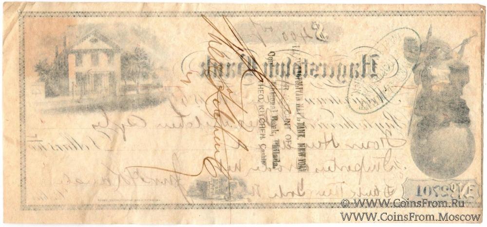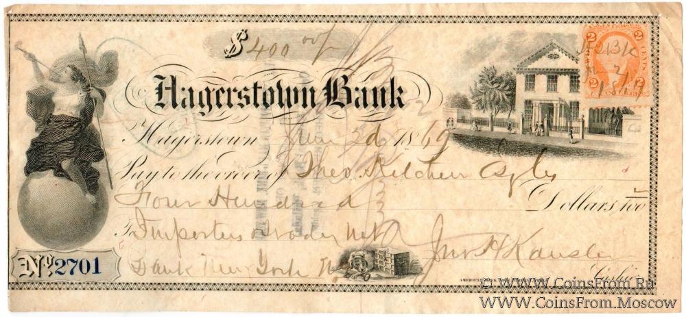 Банковский чек № 2701 (погашен, оплачен). Перфорация. Штампы. Подписи. Хейгерстаун Банк (Hagerstown Bank). Типография: American Bank Note Company. Philadelphia.