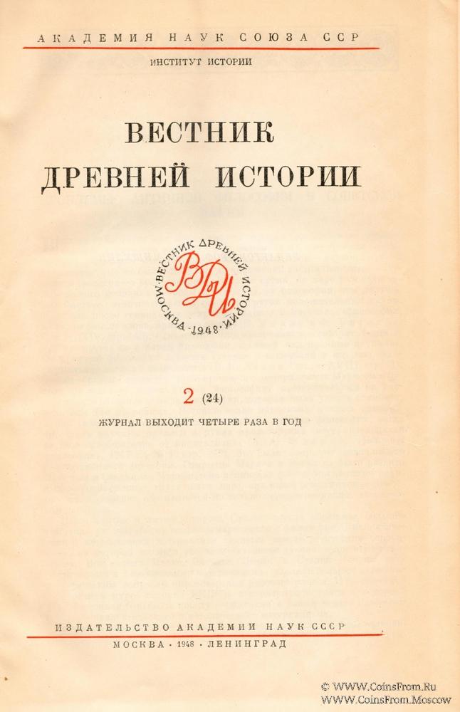 Институт Истории Академии наук СССР. Вестник древней истории № 2. Сборник статей. Издательство Академии Наук СССР. Москва. Ленинград. 1948 г. 318 страниц.