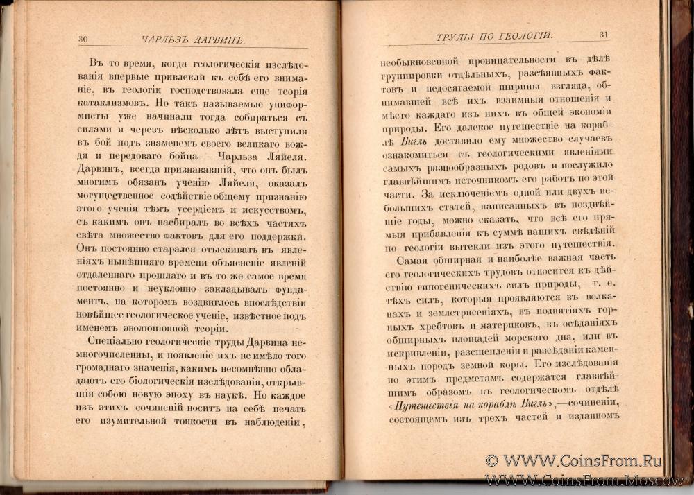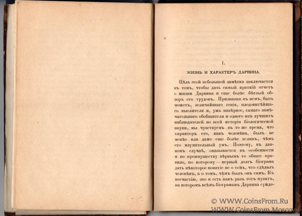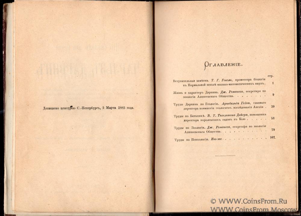 Что сделал для науки Чарльз Дарвин. Популярный обзор его главнейших работ по всем отраслям естествознания, сделанный английскими профессорами Гексли, Гейки,Романесом, и Дайером. Перевод Г. Лопатина. С портретом Чарльза Дарвина, гшравированным на стали в Лондоне. Издание Ф. Павленкова. С.-Петербург. Типография (бывшая) А.М. Котомина, Фонтанка, д. 93. 1883 г. 129 страниц.