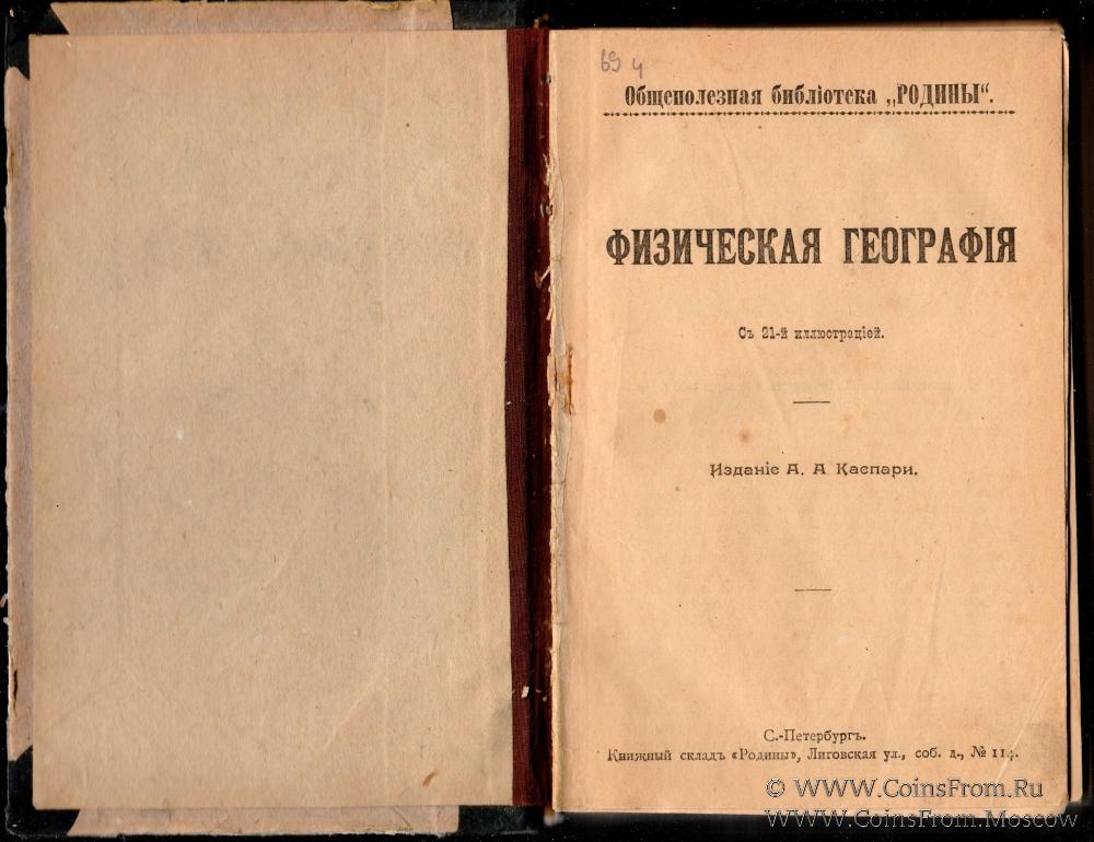 Общеполезная библиотека "Родины". Сборник учебников издания А.А. Каспери. С-Петербург Книжный склад "Родины". Лиговская ул. Соб. д. № 114. 1905 г.