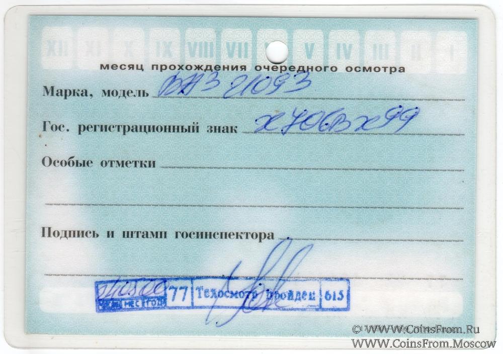 Талон технического осмотра 2002 г. Москва.