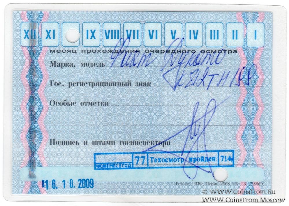 Талон технического осмотра 2012 г. Москва.