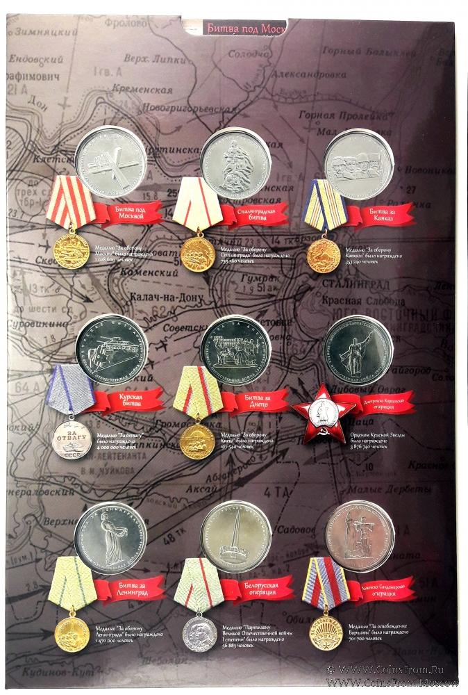 Реверс монет посвящён различным битвам. В альбоме приводятся изображение медалей, которые вручались за участие в этих битвах.