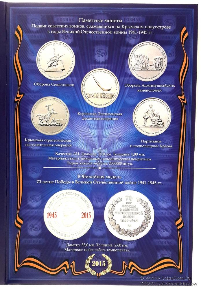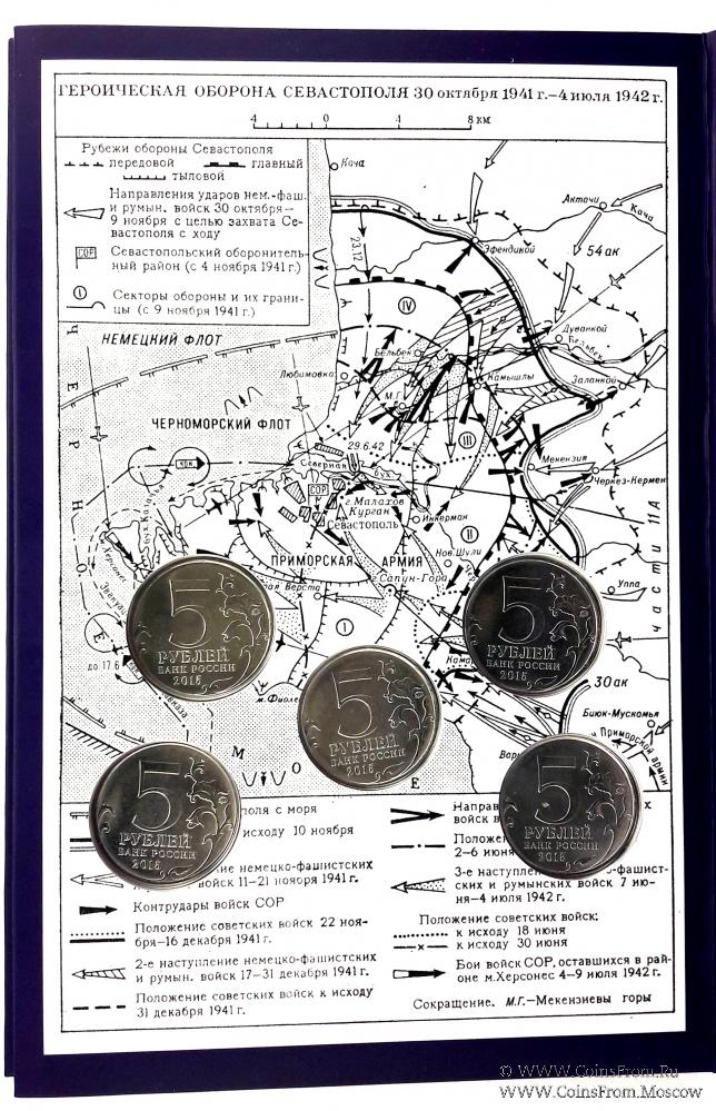 Пять пятирублёвых монет посвящённых обороне крыма и проводимым операциям.