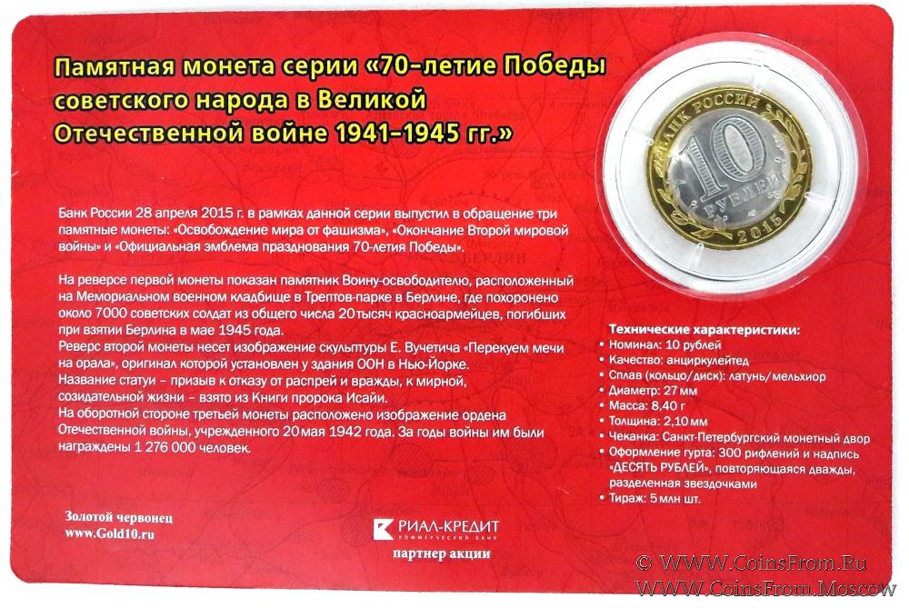 Памятная монета 70 лет победы в Великой Отечественной Войне"
