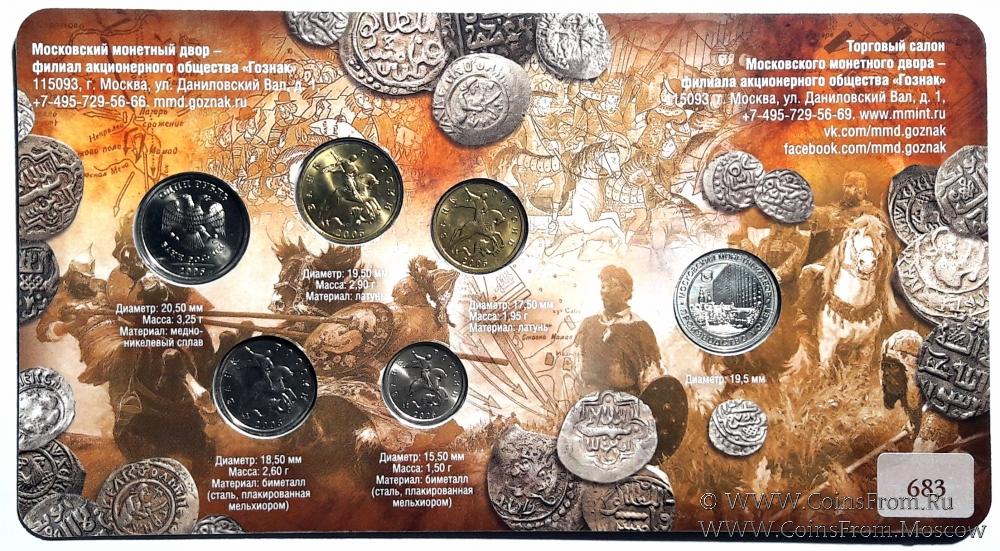 Набор разменных монет ЦБ РФ 2005 г. 625 лет Куликовской битве. ММД. Жетон - 19,5 мм.