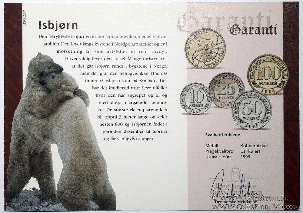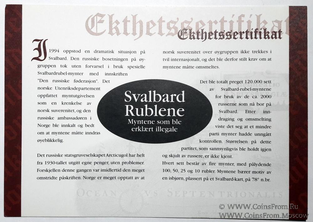 Набор монет "Шпицберген" 1993 г с сертификатом.