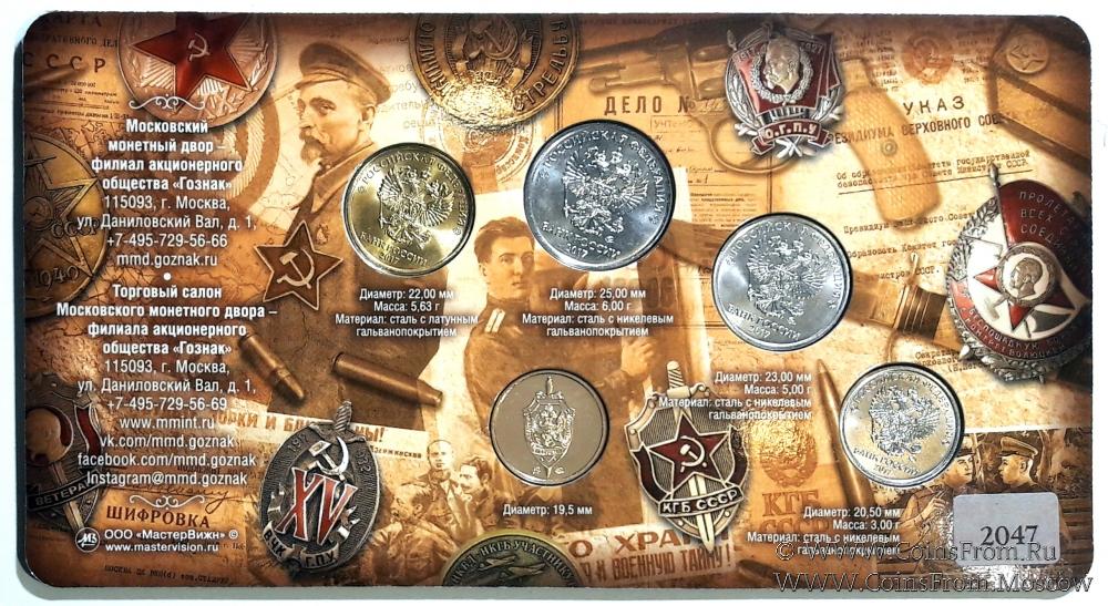 Набор разменных монет ЦБ РФ 2017 г. ФСБ. Жетон белый. ММД.