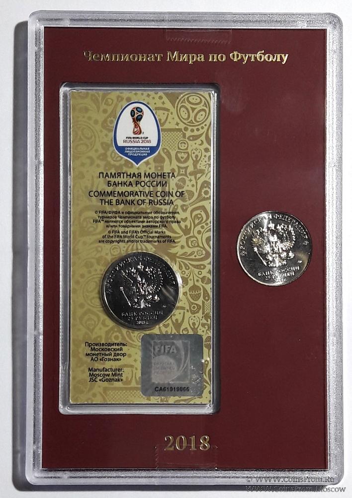 Набор памятных монет "Чемпионат Мира по футболу" 2018 г ММД Бордовая подложка. ММД.