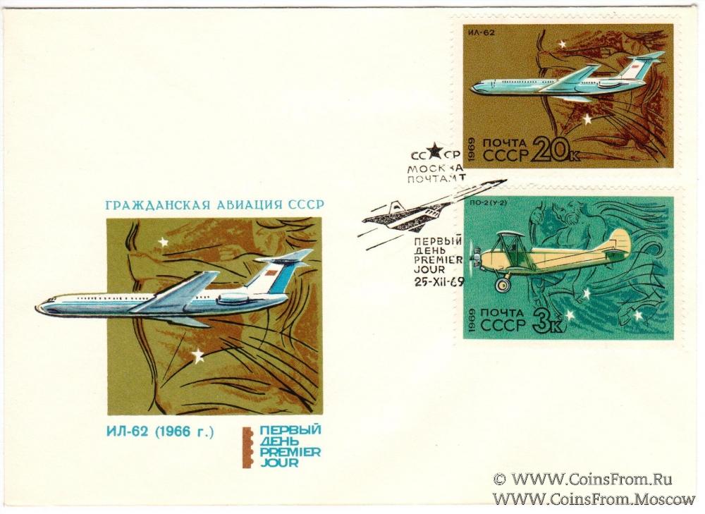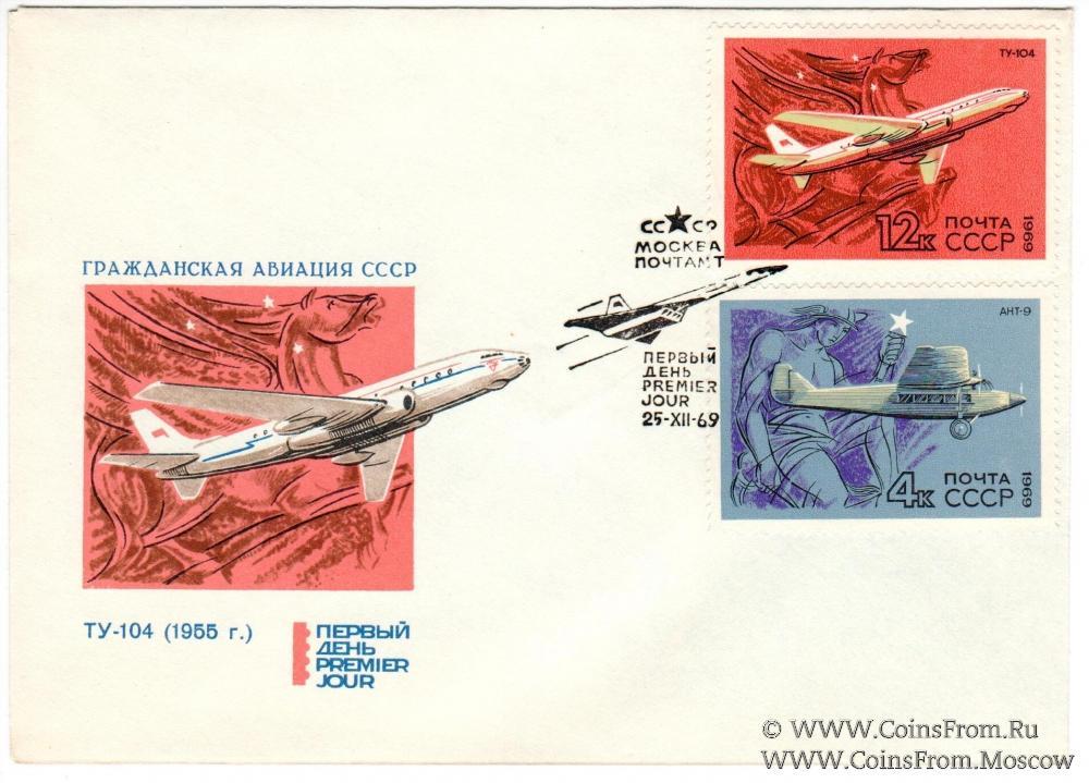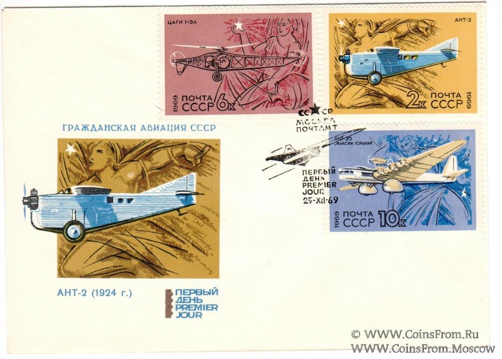 1969 г. Комплект конвертов Первого дня с оригинальными марками - 4 шт. Художник Аксамит А. Министерство связи СССР.