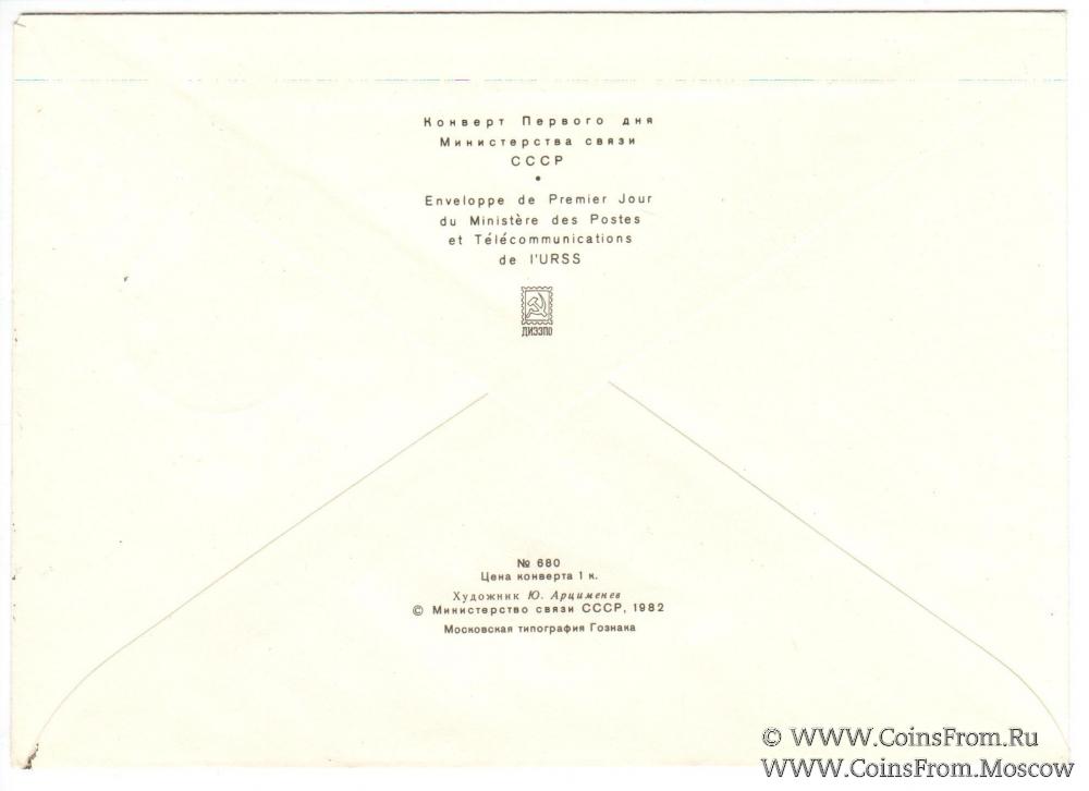 1982 г. Конверт Первого дня с оригинальной маркой. Художник Арцименев Ю. Министерство связи СССР.