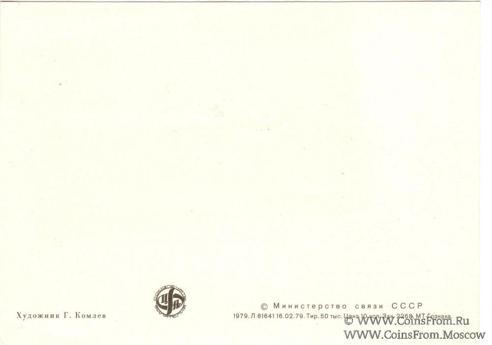 Почтовая карточка первого дня с оригинальной маркой. Художник Комлев Г. Тираж 50 тыс. Министерство связи СССР.