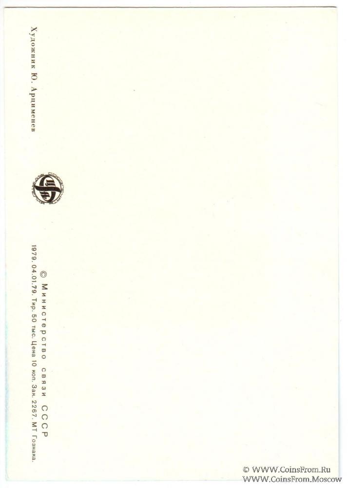 1979 г. Почтовая карточка Первого дня с оригинальной маркой (блок). Художник Арцименов Ю. Министерство связи СССР.