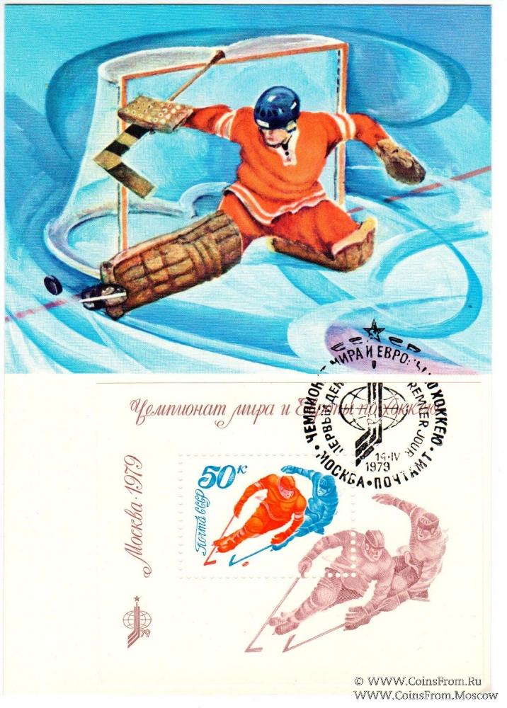 Почтовая карточка "Чемпионат мира и Европы по хоккею"