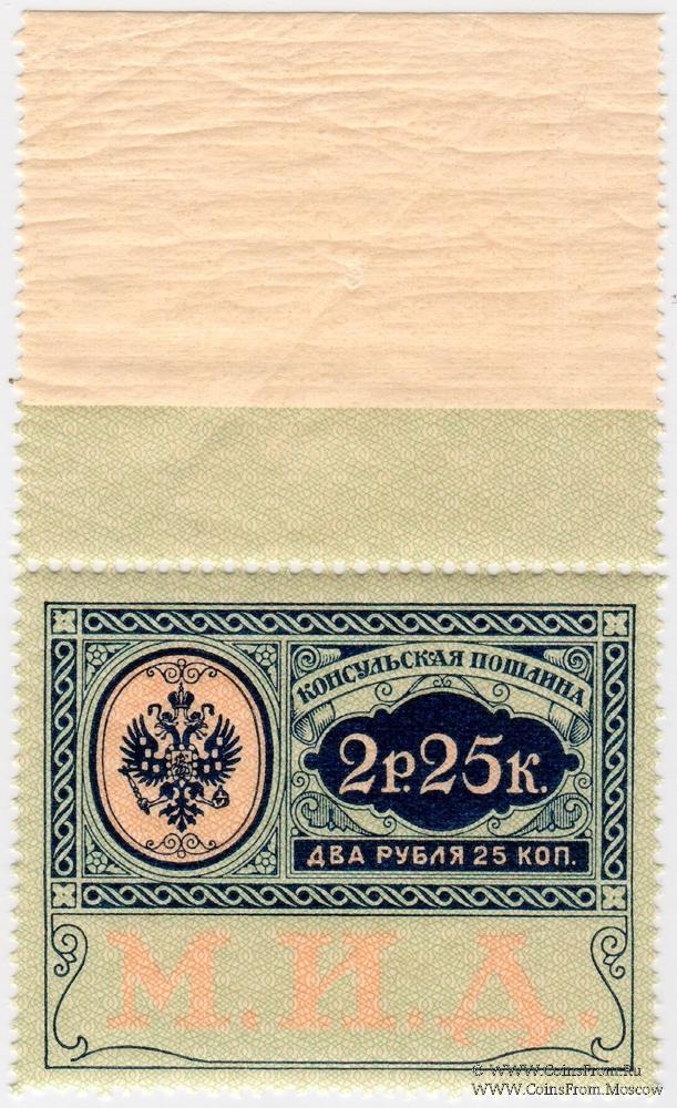 Марка консульской пошлины без даты (1913 г.). "М.И.Д.". Чистая с клеем без наклеек.
