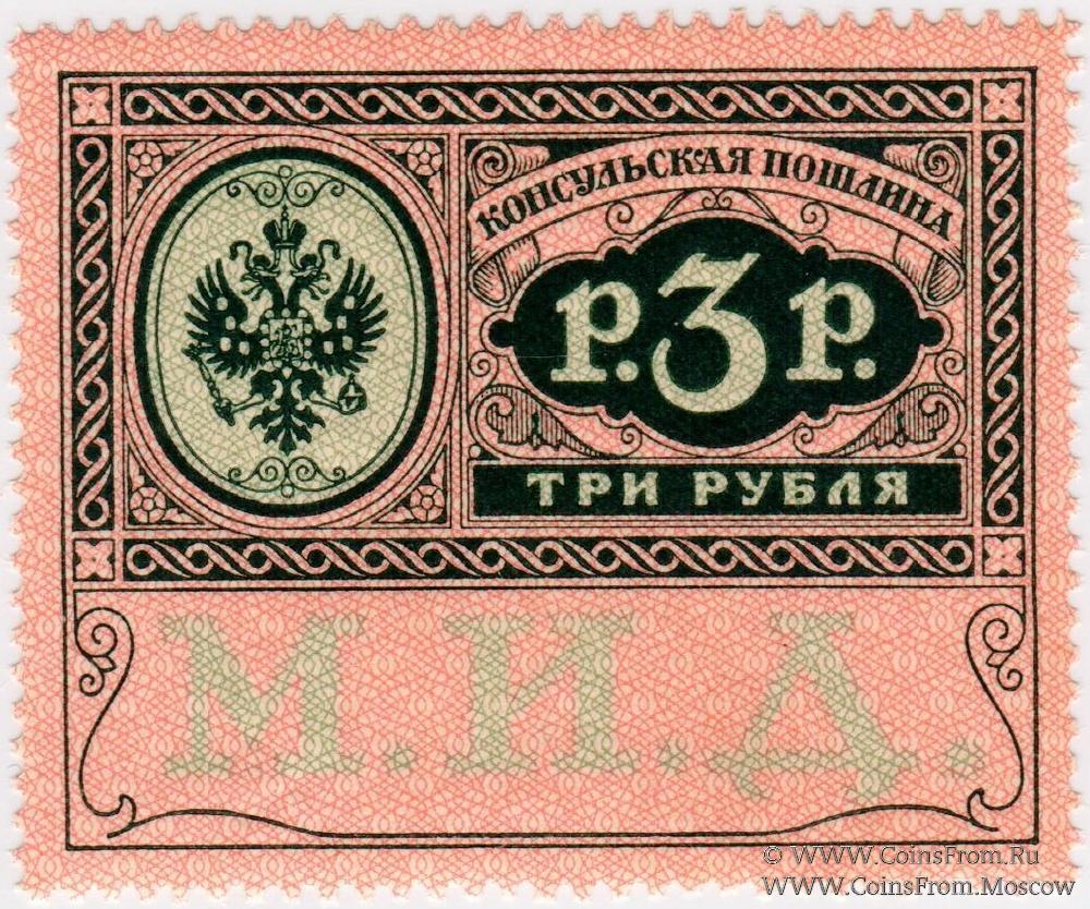 Марка консульской пошлины без даты (1913 г.). "М.И.Д.". Чистая с клеем без наклеек.