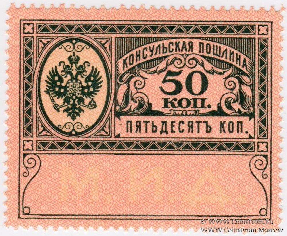 Марка консульской пошлины без даты (1913 г.). "М.И.Д.". Чистая с клеем без наклеек.