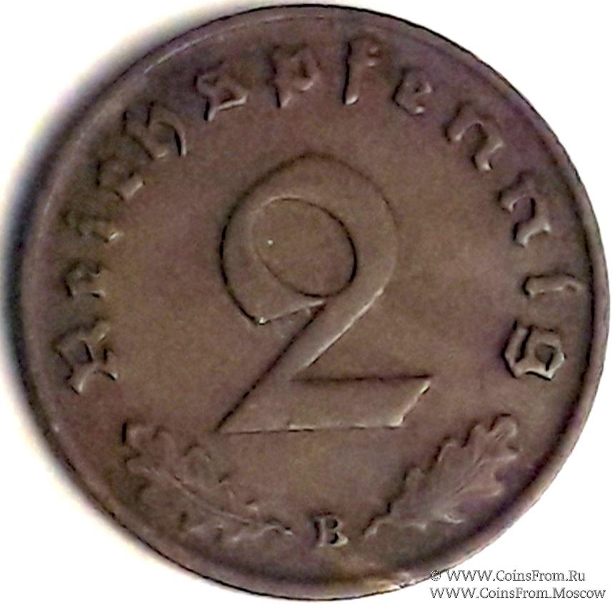 2 рейхспфеннинга 1938 г. (В)