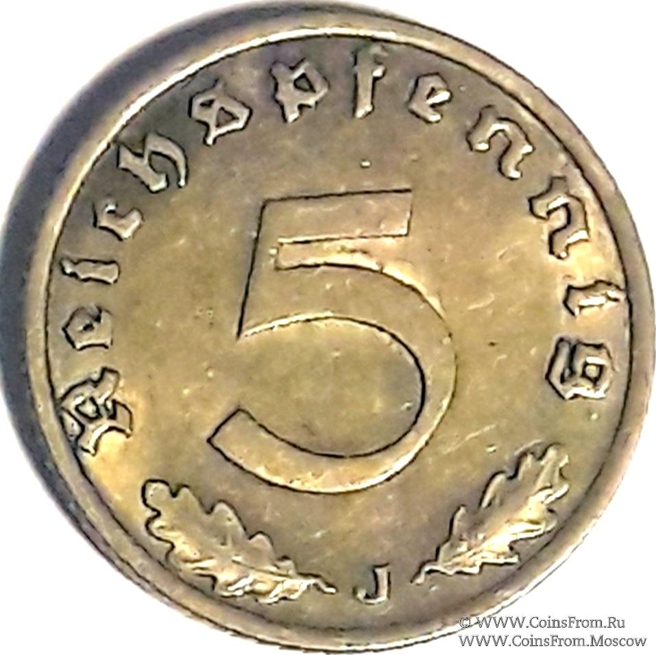 5 рейхспфеннингов 1939 г. (J)