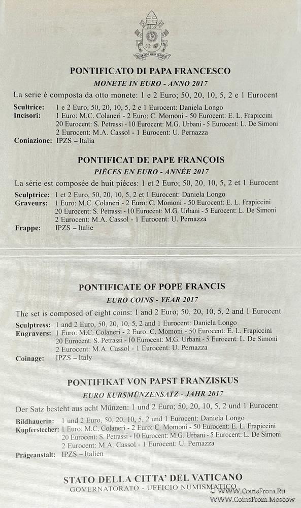 Набор монет Ватикан 2017 г.