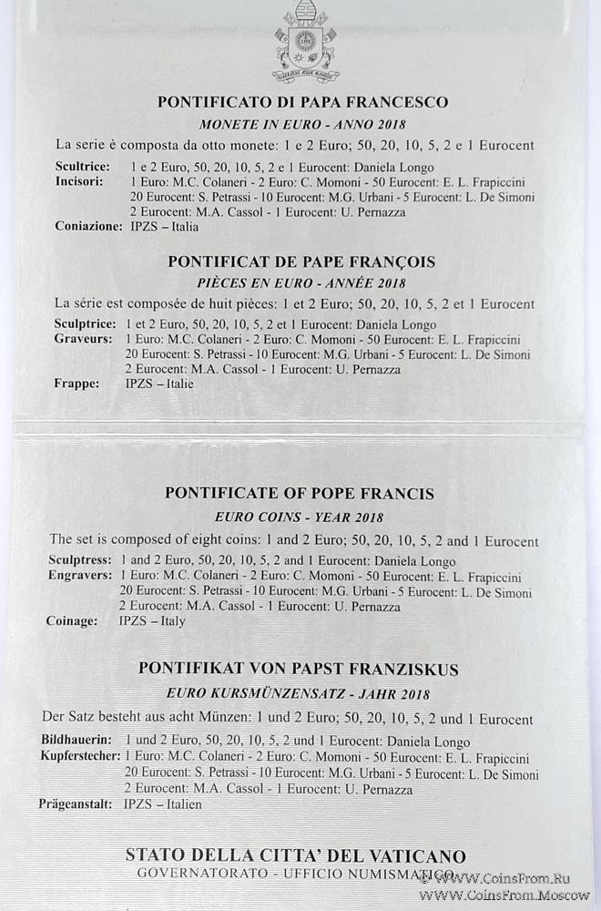 Набор монет Ватикан 2018 г.