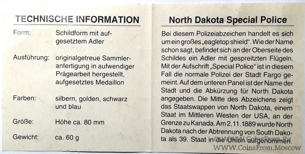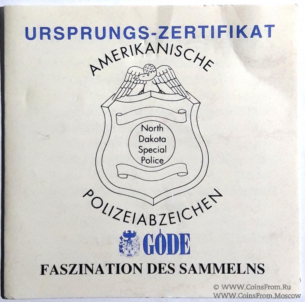 Жетон полиции. Северная Дакота. США. Коллекционная сертифицированная копия.
