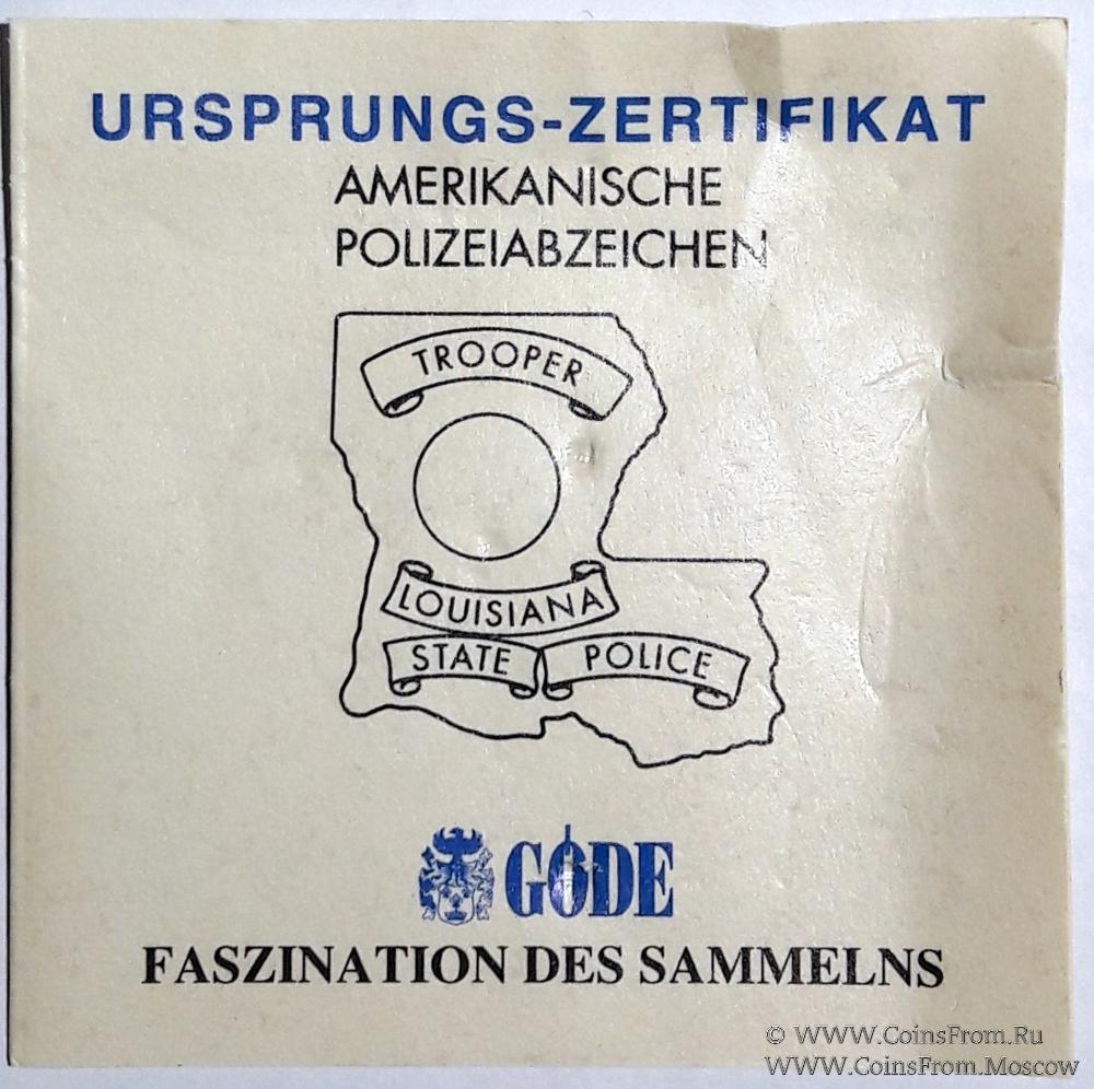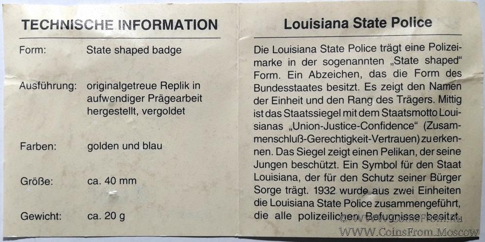 Жетон полиции.Штат Луизиана. США. Коллекционная сертифицированная копия.