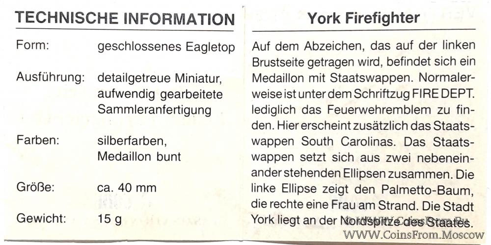 Жетон пожарного. Штат Южная Каролина. США. Коллекционная сертифицированная копия.