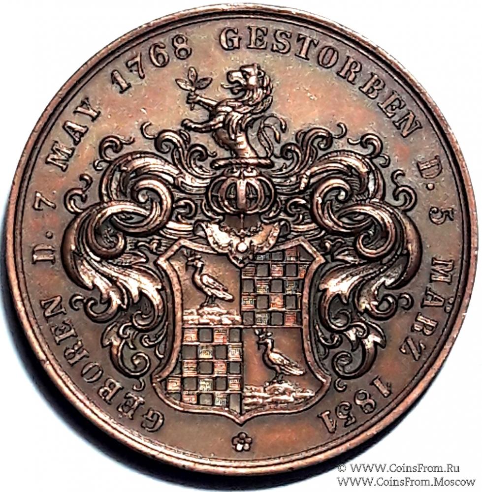 Медаль 1851 г. на смерть бургомистра Гамбурга Кристиан Даниэль Бенеке (Benecke).