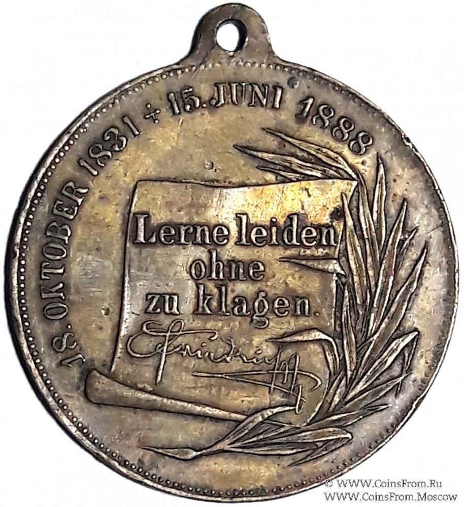 Реверс: над (немец.) по окружности даты жизни и смерти кайзера, по центру LERNE LEIDEN OHNE ZU KLAGEN (учитесь страдать, не жалуясь)/