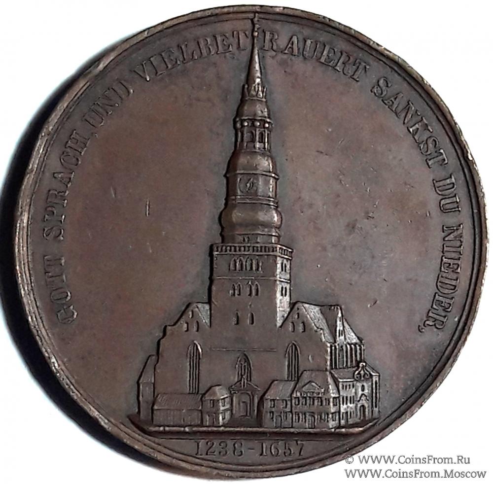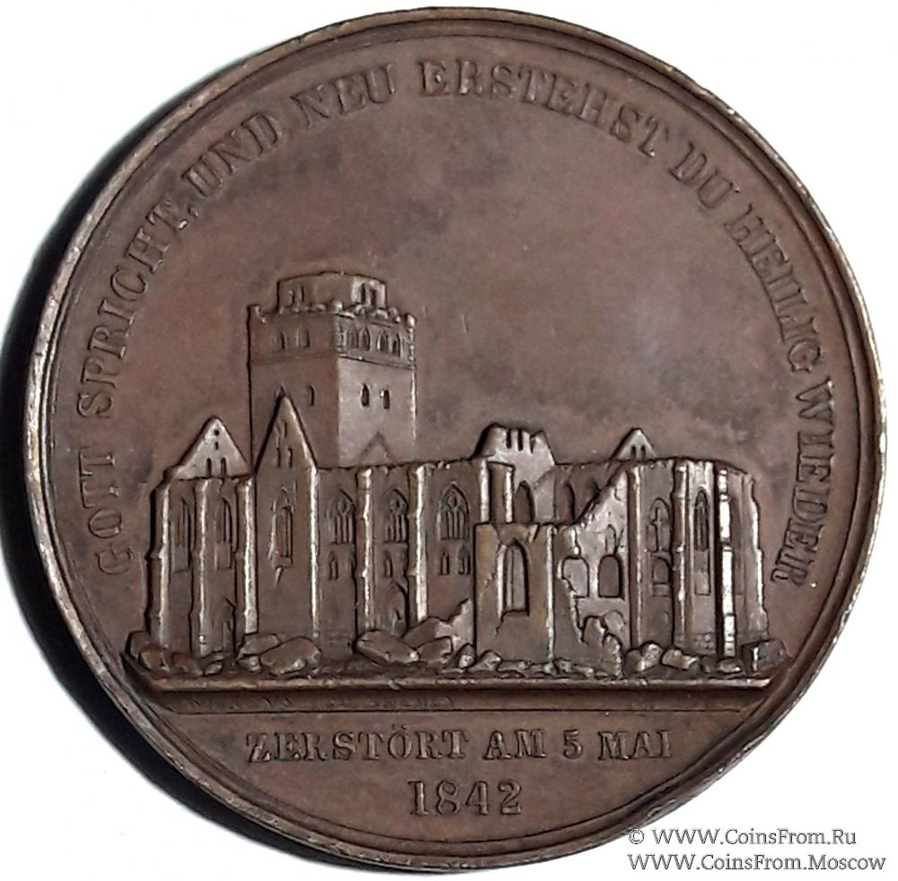 Памятная медаль 1842 г., посвященная восстановлению церкви Николая в Гамбурге. Германия.