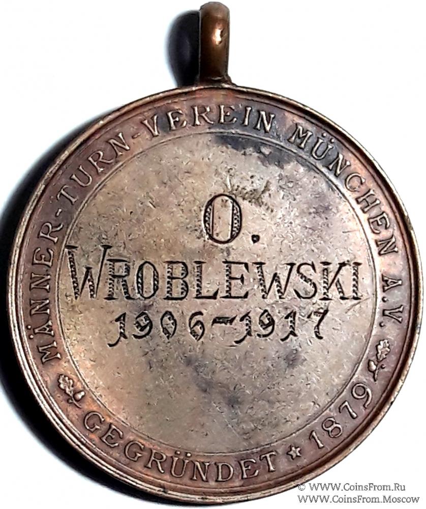 Мужской клуб Мюнхена основан 1879 году. Медаль вручена члену клуба О. Врублевскому за членство в 1906-1917 гг.