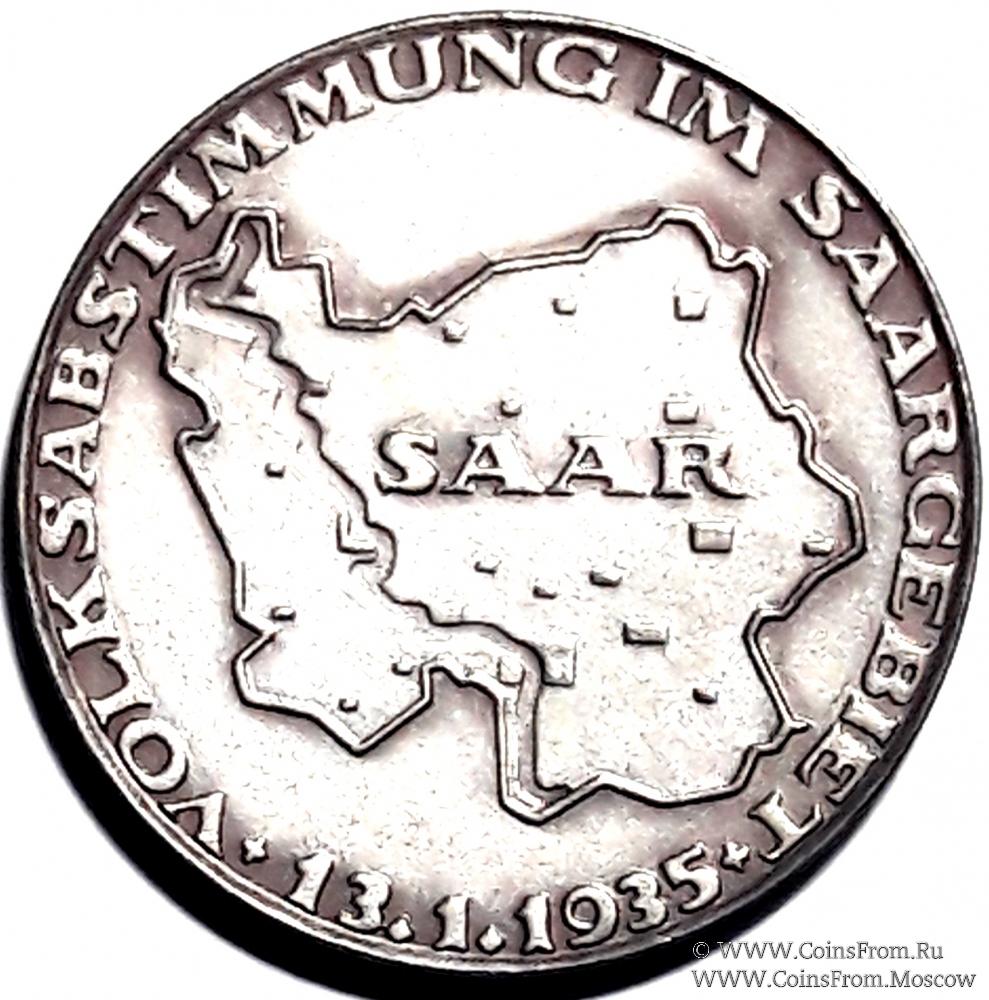 Плебисцит по вопросу о будущем Саара прошёл 13 января 1935 года. На территорию Саара начиная с 1933 года перебирались политические оппоненты национал-социализма, которые развернули кампанию за то, чтобы Саар оставался под управлением Лиги Наций. Однако усилия пропаганды Йозефа Геббельса, поддержанные местными католическими кругами (которые боялись большевизма больше, чем Гитлера), привели к тому, что в голосовании приняло участие 98 % населения, причём подавляющее большинство высказалось за воссоединение с Германией. После голосования Гитлер заявил, что "Германия не имеет более территориальных претензий к Франции". 17 января 1935 года итоги плебисцита были утверждены Советом Лиги Наций. 1 марта 1935 года территория вернулась под управление Германии.
