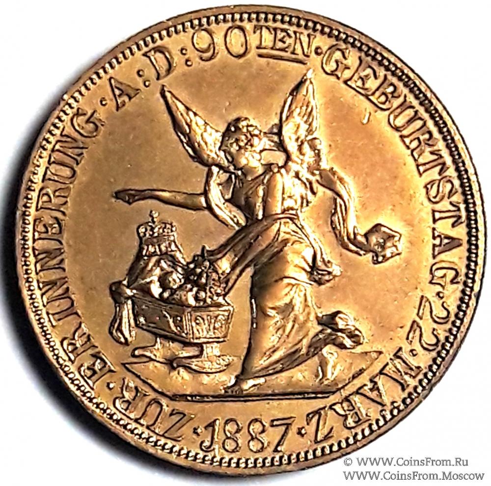 Памятная медаль 1887 г., посвященная 90-летию Вильгельма. Германия. Диаметр 33 мм. Вес 18.98 г.