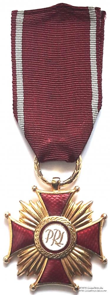 В центре креста в медальоне, залитом белой эмалью, помещена монограмма из позолоченных букв «PRL» (до 1952 года монограмма состояла из двух букв: «RP»). Медальон окружен двумя кольцами: внутреннее залито эмалью красного цвета, внешнее – позолоченное – украшено волнистым орнаментом.