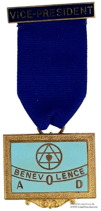 АВЕРС: прямоугольник голубой эмали с золотоё каймой и с изображением символов Друидов: круг, треугольник, тау и сердце. Ниже символов надпись Benevolence и аббревиатуры Ордена AOD.