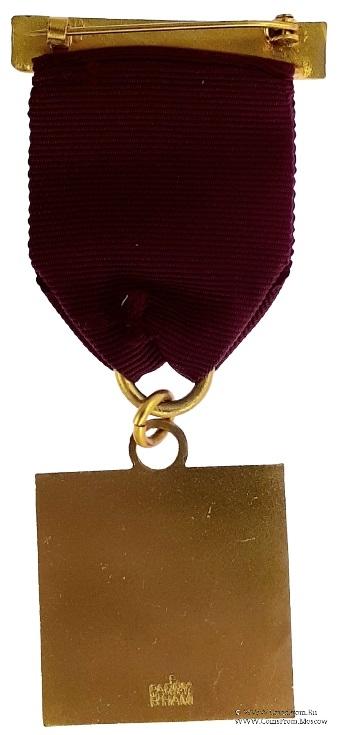 КОЛОДКИ/МЕДАЛЬОН: верхняя колодка прямоугольной формы синей эмали с надписью LIFE MEMBER (пожизненный член) с булавкой для ношения. Низ ленты без колодки продет в кольцо знака.