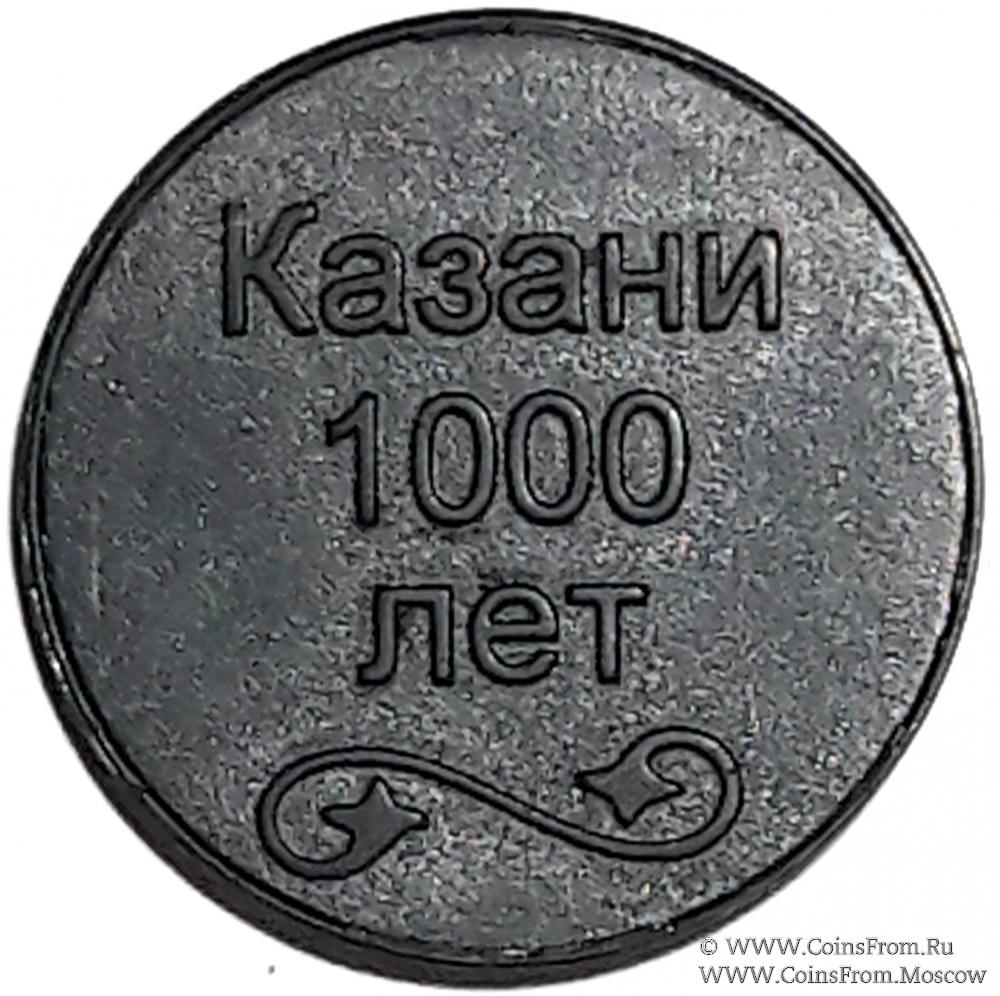 На одной стороне надпись "1000 лет Казани", на оборотной стороне — логотип предприятия "Метроэлектротранс".
