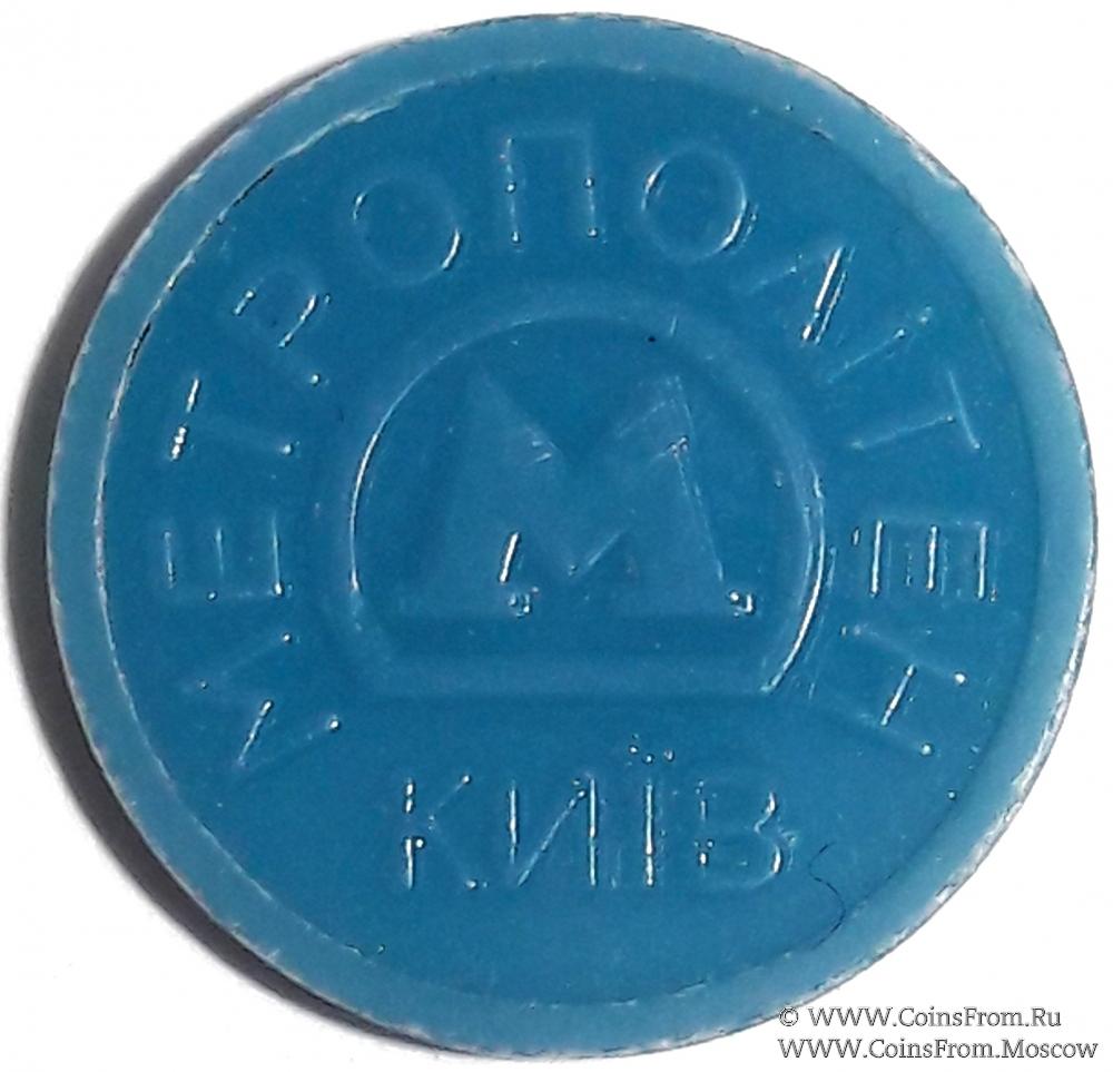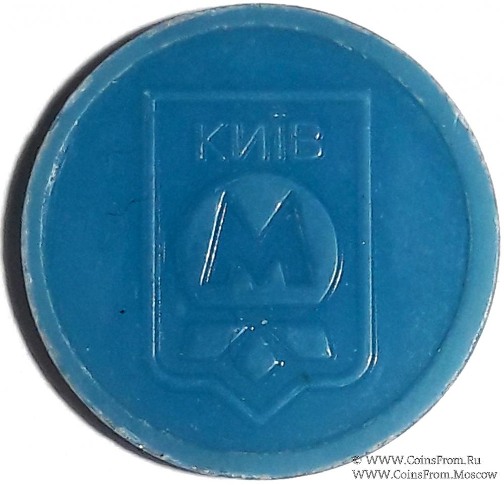 Жетон Киевского метрополитена. Синий пластик. Диаметр 25 мм.