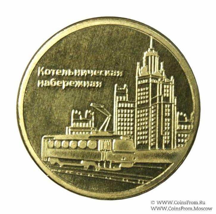 Жетон "Котельническая набережная", ограниченная серия. Московский транспорт. Московский метрополитен. Жетон. Латунь. Размер: 32,6 мм х 2 мм.