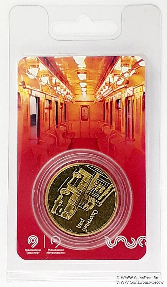 Жетон "Охотный ряд", ограниченная серия. Московский транспорт. Московский метрополитен. Жетон. Латунь. Размер: 32,6 мм х 2 мм.
