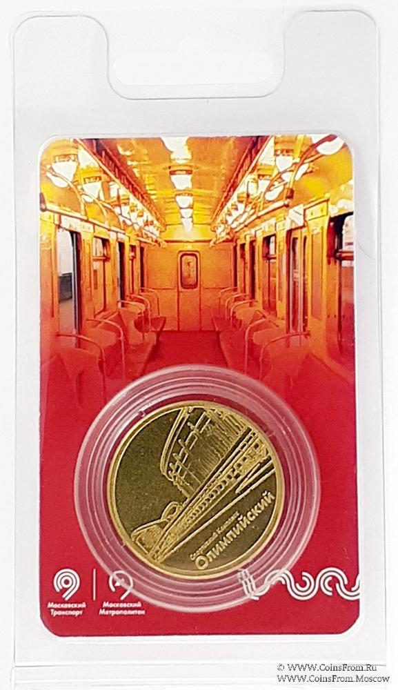 Жетон "Спортивный Комплекс Олимпийский", ограниченная серия. Московский транспорт. Московский метрополитен. Жетон. Латунь. Размер: 32,6 мм х 2 мм.