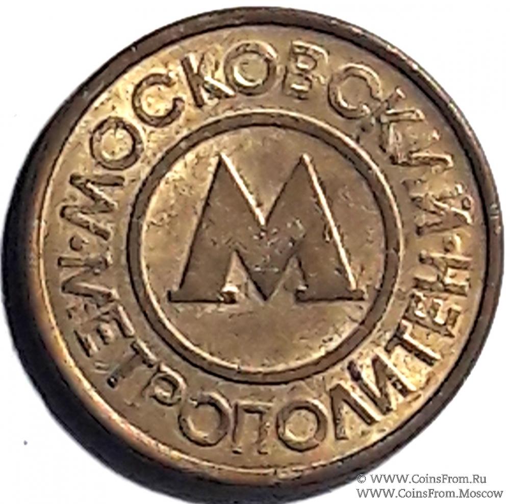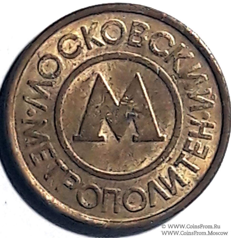 Жетон Московского метрополитена. Металл жёлтого цвета (сталь плакированная латунью). 1992 г. Диаметр 25 мм.