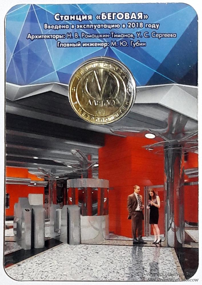 Юбилейный жетон в честь введения в эксплуатацию станции "Беговая". Упаковка - блистер.