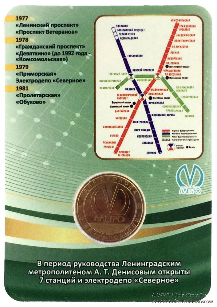 Юбилейный жетон 2020 г. "Начальники Петербургского метрополитена". Денисов А.Т. (возглавлял метро с 1976 до 1982 г.). Упаковка - блистер. Выпуск 15 ноября 2020 г. СПМД. Петербургский метрополитен.