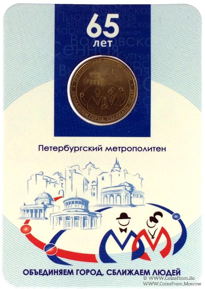 Юбилейный жетон 2020 г. "65 лет Петербургскому метрополитену". Упаковка - блистер. Выпуск 15 ноября 2020 г. СПМД. Петербургский метрополитен.