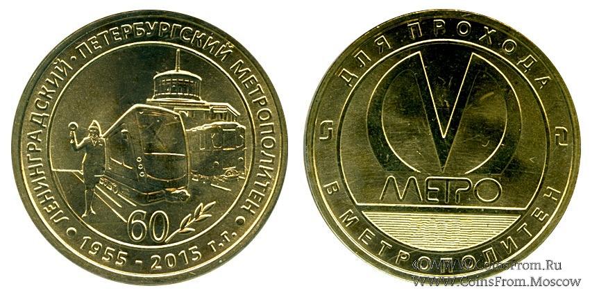 Жетон метрополитена. Санкт-Петербург. "60 лет метрополитену". Металл желтого цвета. Диаметр 23 мм. Без упаковки.