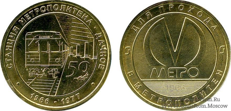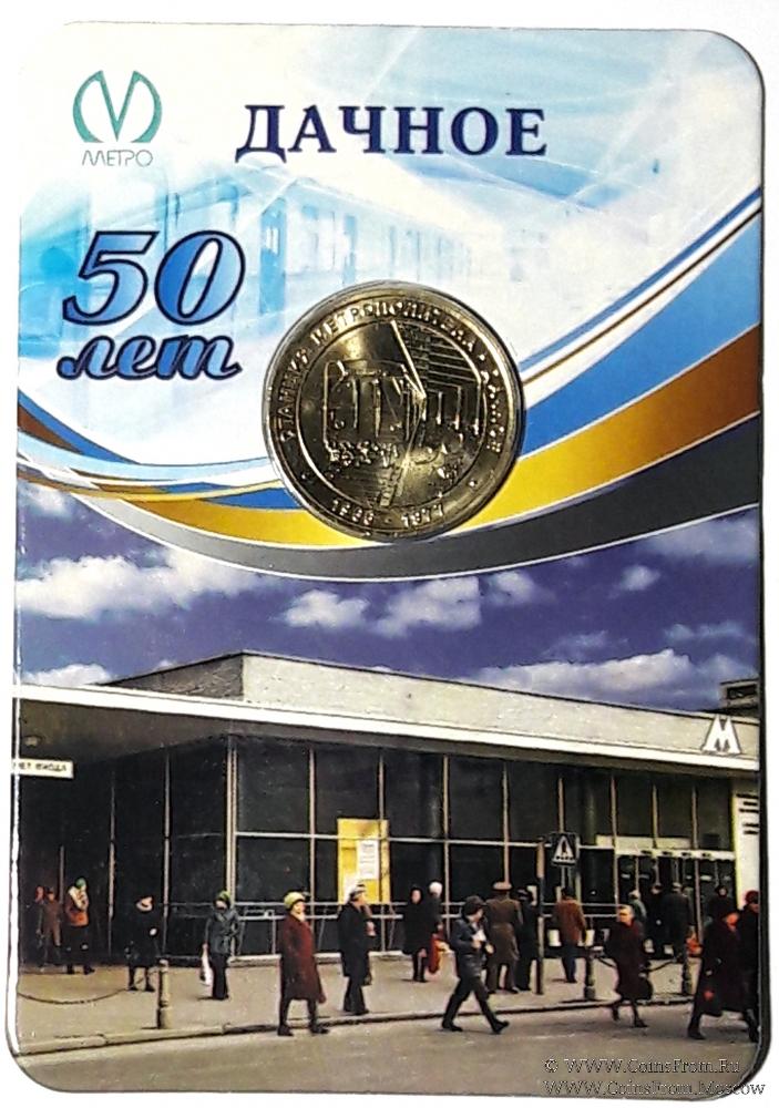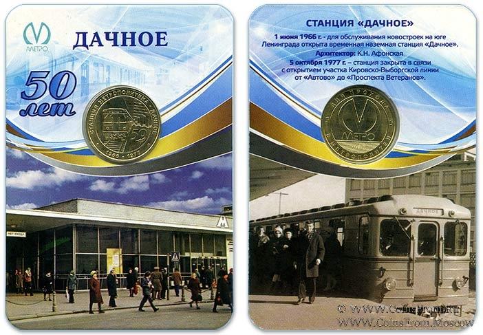 Юбилейный жетон к 50-летию временной наземной станции "Дачное". Упаковка - блистер.
