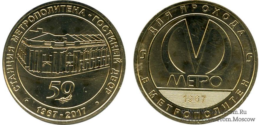 Юбилейный жетон к 50-летию станции "Гостиный двор" (открыта 3.11.1967 г.). Упаковка - блистер.